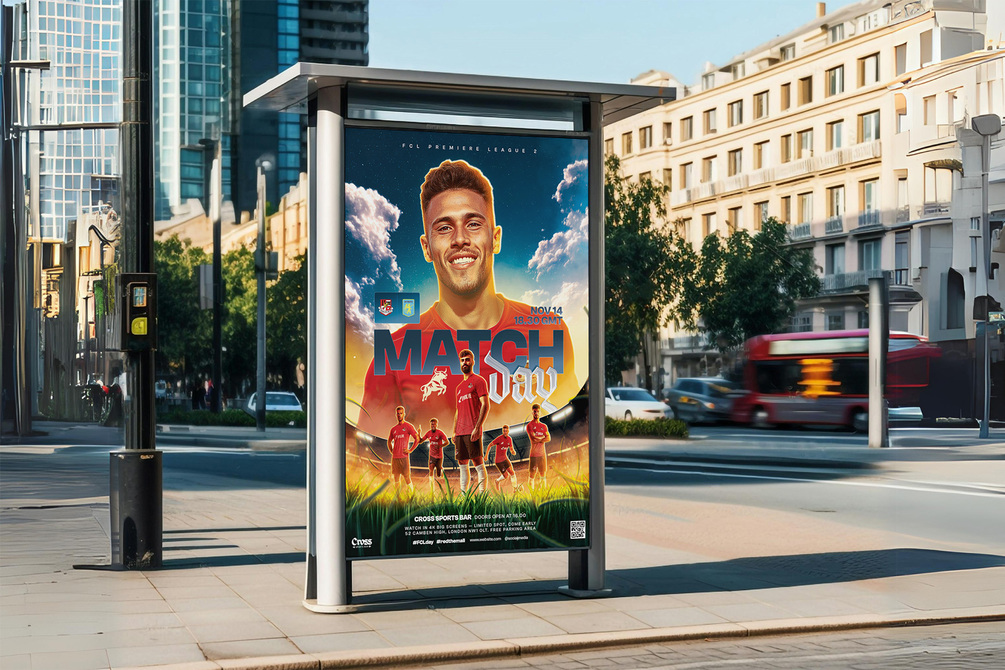 Promote your next football match with this dynamic Photoshop flyer template. Designed with a vibrant and cinematic sunset stadium background and professional layout, it’s perfect for showcasing players, match info, and sponsors. Smart Object layers make photo replacement quick and easy. Ideal for sports bars, clubs, local leagues, and digital promos or print.