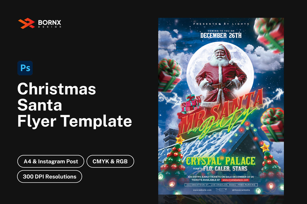 Fully customizable & very easy to edit DJ flyer template Photoshop PSD. This flyer can be used for DJ concerts or party event promotions, or even any music events. You can edit the text, add your logos, & insert your model photos via the Smart Object layer (all graphic effects will be applied automatically).