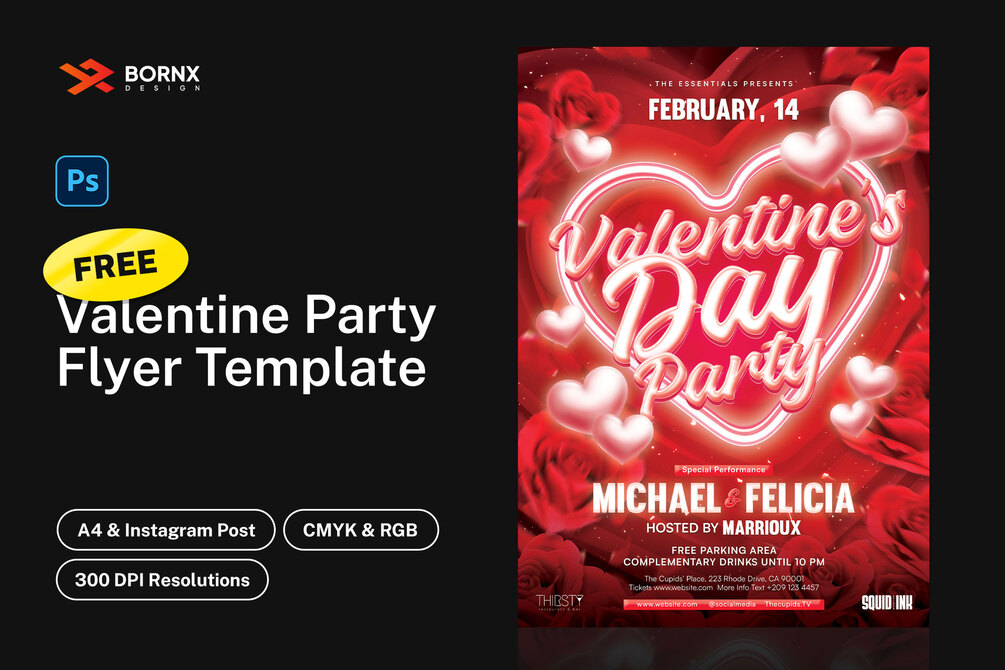 Fully customizable & very easy to edit free Valentine's Day flyer PSD template. This flyer can be used for your Valentine's Day party or event. You can edit this template with Adobe Photoshop.