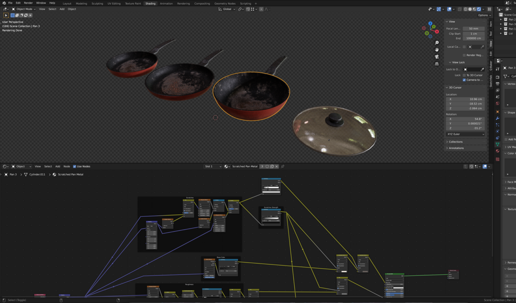 Scratched Frying Pans Free 3D Model + Blender Materials & JPEG Textures