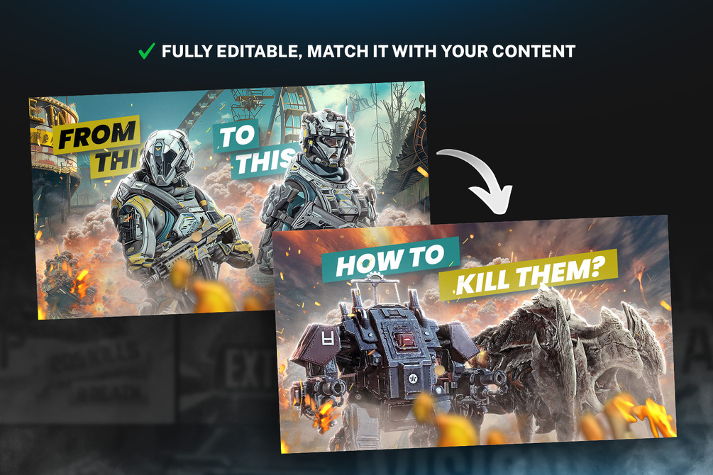 Level up your gaming YouTube channel with our awesome pack of 19 Gaming YouTube Thumbnail Templates PSD! Perfect for gaming YouTubers, these eye-catching designs are sure to boost your click-through rates and get your videos noticed.